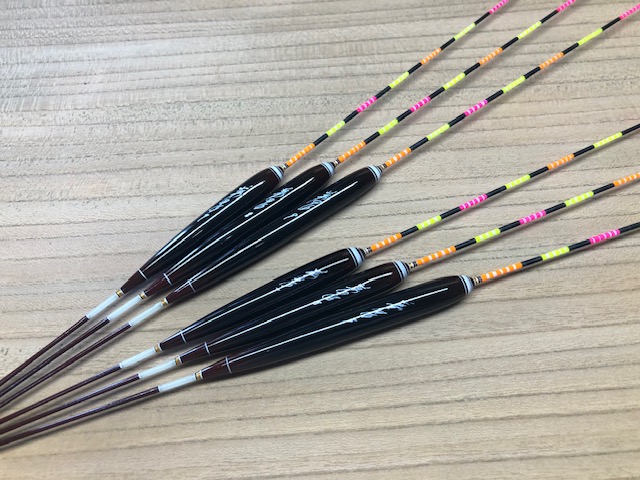 さて画像のものはヤフオクに出品する第二弾です。年に数回は宣伝を兼ねる意味で出品しています。この浮子は3本組み2セットで今年の春先に良型の数釣りから50上まで実績のある浮子です。形状は宙でも底でも使えるタイプです。ちなみに50上は底と宙と両方をこの浮子で釣り上げています。
