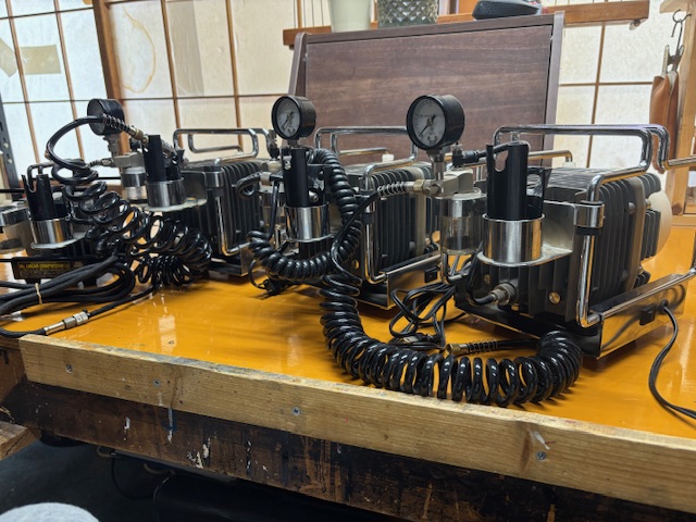 コンプレッサーは安いものから高いものまで販売していますが、安いものは音が大きかったり吐出量が少ないものが多い。