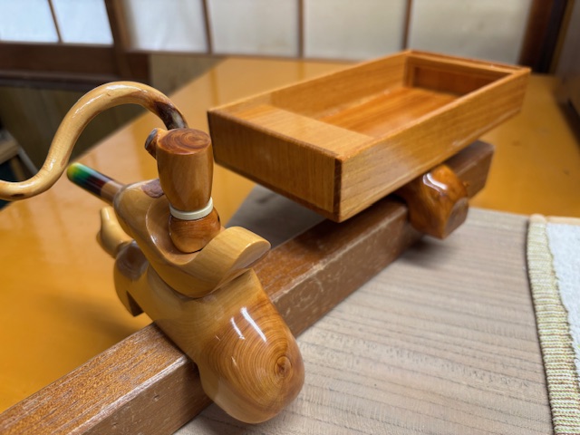 自宅に帰っても老犬チャコがいるので大晦日も仕事場に戻ります。何か作っていないと落ち着かない性格であるので、持っていたケヤキの薄板を引っ張り出して小物置きを作ることにした♪小物を落とさないように深めに作ろう。早速木工電動ソーでもってカット。接着、ウレタン塗装で完成。簡単なもんだ♪誰でも作れるレベルなので自慢にもなりません。とりあえず30数年前に自作した万力を付けて最終確認。こんなもんだろ。