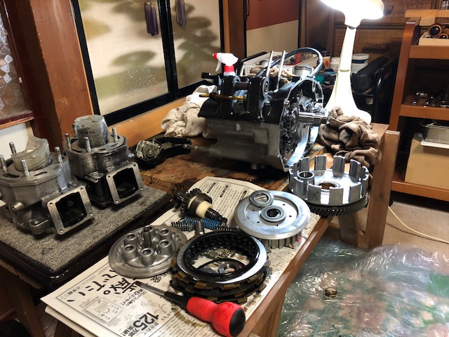 そうは言ってもたまには息抜きでバイクに乗ったり、画像のようにスペアエンジンのOHをしています。