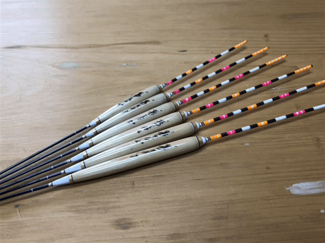 画像のセットは東京のベテランへら師が椎の木湖用にオーダーされました。もうかれこれ長いお付き合いの方です。今回はと注文書を見るといかにもオーソドックスの典型のへら浮子でした。茅春独自のバランスの取り方を用いて制作しましたが、完成後はとてもバランスがとれてる♪もともと各部の寸法のバランスが良かったのでしょう。