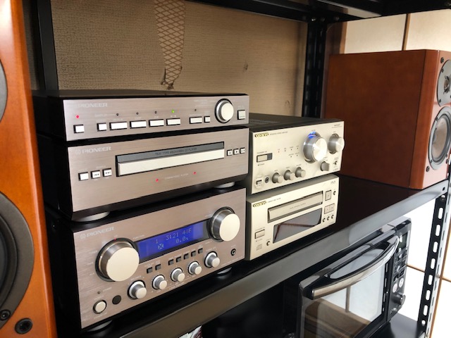黒のパイオニアのコンポはかれこれ25年ほど使っている。買ったときは結構高かった記憶があります。右のオンキヨーはさほど高くないけどこれもかなりの年数が経っています。