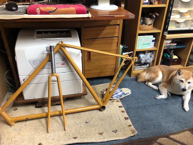 とはいえ仕事ばかりの生活はメリハリがありませんので、自粛をかねて自転車作りに励みます。数年前から自転車に凝りビンテージものが2台とスポルティーフタイプが1台で計3台ある。これだけじゃ飽き足らず体格に合った35年前のフレームを購入し1年計画で完成させる予定です。パーツは当時ものの良いやつを取り付ける予定だけど、ビンテージパーツは目玉が出るほど高い・・・まあ徐々に揃えて組み付けていこう。