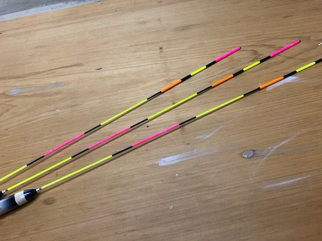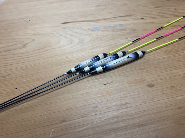 画像のドボン浮子はライトドボンで、神奈川のヤマちゃんの注文浮子。以前ボディ12ミリ径の極太ボディで制作しましたが、今回は8ミリ径の軽いタイプです。カーボン足にグラスムクとパイプトップの組み合わせで風や流れでシモッてもパイプ部分でこらえてくれます。