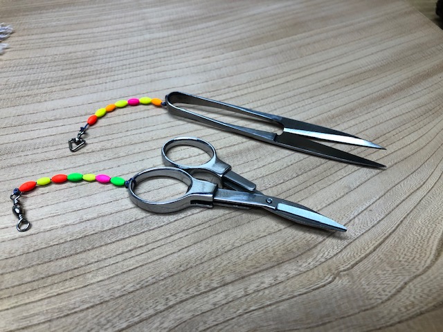 糸切りばさみは糸しか切らず鉛は切りません。鉛をカットする場合はもう一つの折りたたみはさみを使う。人から見たらどうでも良いだろうと思うところにこだわってしまうのです。