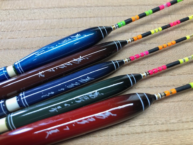 当時は八王子に住む越川さんが雅舟というナイター浮子を販売していて私も30本ほど持っていました。今でも大切に持っていますが、浮子を作り始めてからは自作のナイター浮子を使用しています。