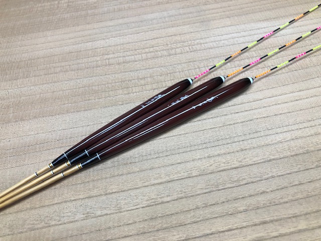 今回は前回出品した底浮子(パイプとムク)それぞれ1セットと新たに宙浮子をパイプとムクを1セットずつ出品することになりました。