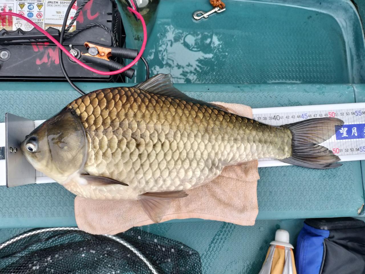片倉で52.5センチ♪玉に入れる前に50はあると確信したそうです。先般同じ片倉で八王子の松岡さんが釣り上げた53.5にはわずかに届きませんが、それでも充分過ぎる巨ベラです。