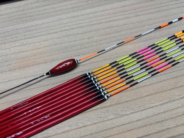 へら浮子作りは気を抜けません。しかしもっと気を入れないとならないのが画像の浮子です。細い方の浮子9本で問題はボディ径が3ミリです。尚且つボディ長が20~30センチと長く割もそれなりに長くしなければならない。